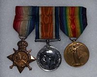 He enlisted in the army on 31st August 1914 as a private in 1st Battalion Monmouthshire Regiment . His service number was 2421 and by 13th February 1915 he was in France. The service numbers of Monmouthshire regiment soldiers were changed on 1st March 1917 after which, his number was 225777. He was discharged on the 26th February 1919 under King’s Regulations para (xvi) ‘no longer physically fit for service.’